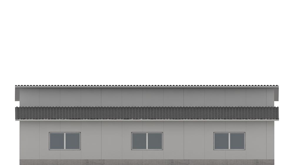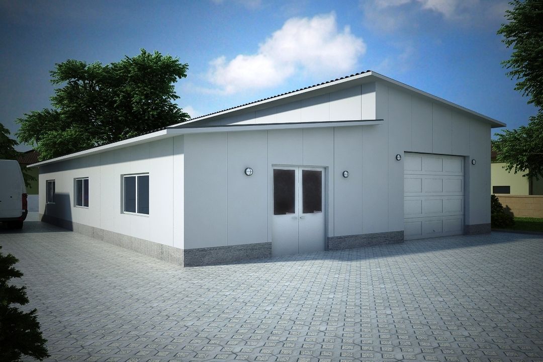 Budynek konstrukcji stalowej. Ściany z płyty warstwowej. Bramy o wymiarach 3,50×3,00m. Więźba dachowa dwuspadowa, stalowa, pokryta płytą warstwową.