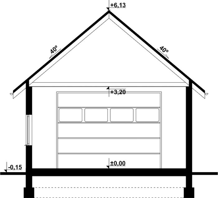 Budynek wykonany w technologii tradycyjnej. Ściany murowane z bloczków z betonu komórkowego grubości 24cm. Brama o wymiarach 4,10×2,85m. Więźba dachowa dwuspadowa, drewniana, pokryta blachodachówką.