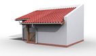Technologia tradycyjna , ściany murowane grubości 25 cm. Konstrukcja więźby dachowej drewniana, pokrycie dachówka ceramiczna. Brama garażowa o wymiarach 2400 x 2400.