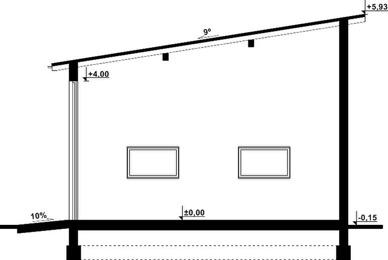 Budynek wykonany w technologii tradycyjnej. Ściany murowane z bloczków z betonu komórkowego grubości 24cm. Brama o wymiarach 4,00×4,00m. Więźba dachowa jednospadowa, drewniana, pokryta blachodachówką.
