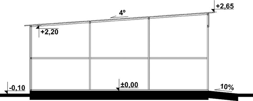 Budynek konstrukcji stalowej. Ściany z blachy trapezowej „T-18”. Brama o wymiarach 2,90×2,15m. Więźba dachowa jednospadowa, stalowa, pokryta blachą trapezową.