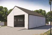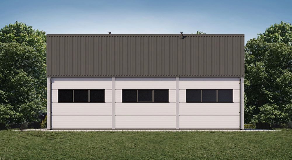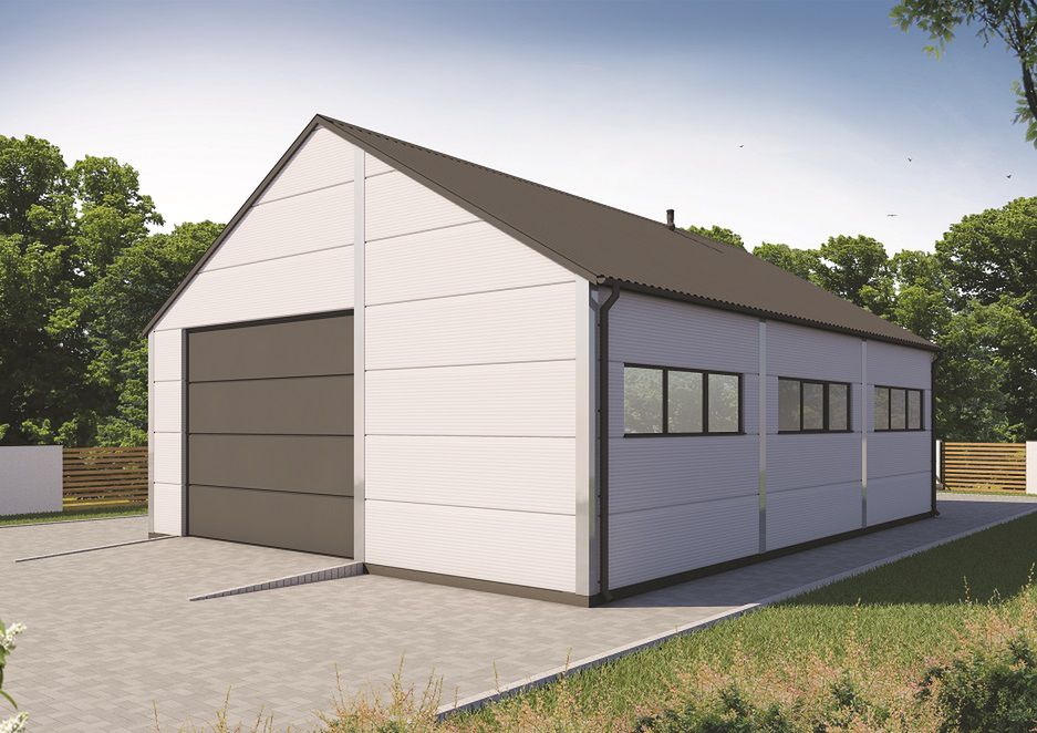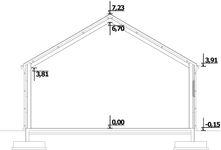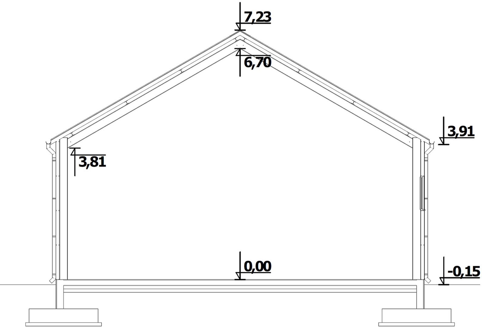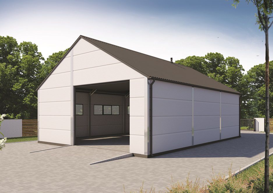 Ściany zewnętrzne: płyta warstwowa 10cm. Strop: brak. Schody: brak. Ścianka kolankowa: brak. Dach: dwuspadowy, pokrycie z płyty warstwowej.