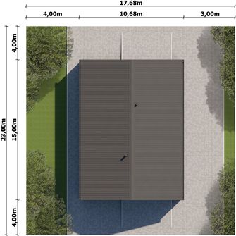 Graficzne opracowanie rzutów poglądowych widocznych na karcie projektu zostało wykonane przez Extradom.pl. Prezentowane przez Extradom.pl wizualizacje wykonane zostały przez autora projektu i należy poczytywać je jedynie za przykład i propozycję wykończenia, wizję architektoniczną autora projektu. Ostateczne wykończenie budynku może nastąpić na wiele sposobów. Szczegółowe rozwiązania zastosowane w oferowanej dokumentacji - w tym również ilość, lokalizacje i wygląd okien, drzwi, kominów - mogą w niewielkim stopniu różnić się od prezentowanej wizualizacji budynku.