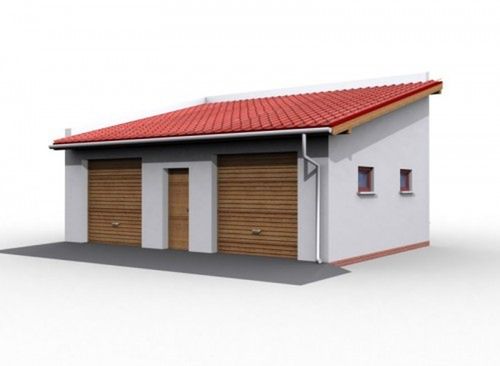 Technologia tradycyjna, ściany murowane grubości 25 cm. Konstrukcja więźby dachowej drewniana, pokrycie dachówka ceramiczna. Wymiary bramy garażowej 2400 x 2400.