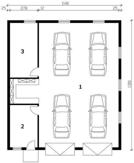 G163 garaż czterostanowiskowy z pomieszczeniami gospodarczymi - SLN1258