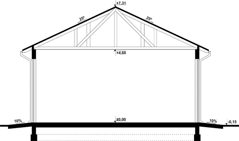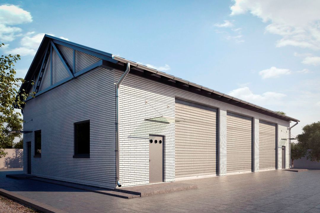 Budynek wykonany w technologii tradycyjnej. Ściany murowane z pustaków ceramicznych „POROTHERM” grubości 25cm i 12cm. Bramy o wymiarach 4,00×4,00m. Więźba dachowa dwuspadowa, drewniana, pokryta blachą trapezową.