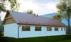 Graficzne opracowanie rzutów poglądowych widocznych na karcie projektu zostało wykonane przez Extradom.pl. Prezentowane przez Extradom.pl wizualizacje wykonane zostały przez autora projektu i należy poczytywać je jedynie za przykład i propozycję wykończenia, wizję architektoniczną autora projektu. Ostateczne wykończenie budynku może nastąpić na wiele sposobów. Szczegółowe rozwiązania zastosowane w oferowanej dokumentacji - w tym również ilość, lokalizacje i wygląd okien, drzwi, kominów - mogą w niewielkim stopniu różnić się od prezentowanej wizualizacji budynku.