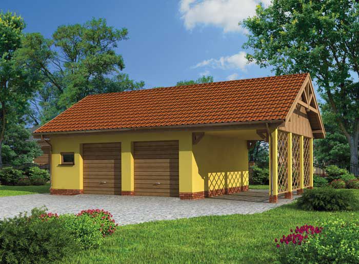 G178 garaż dwustanowiskowy z wiatą garażową - SLN1416