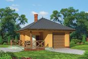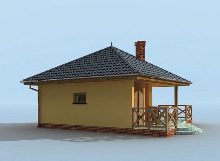 Technologia tradycyjna :- powierzchnia użytkowa (bez werandy) -26,56m2- powierzchnia użytkowa (z werandą) -47,91m2- powierzchnia zabudowy (bez werandy) -34,17m2- powierzchnia zabudowy werandy -22,47m2 - powierzchnia całkowita (bez werandy) -34,17m2 - kubatura części zamkniętej i zadaszonej - 131,00m3- kubatura części otwartej i zadaszonej -51,00 - ściany zewnętrzne nośne murowane grubości 25cm - wszystkie ściany wykonane pustaków ceramicznych "POROTHERM" - wysokość budynku 5,49m - dach czterospadowy 30° - więźba dachowa drewniana - pokrycie dachu dachówka cementowa badź ceramiczna - wymiar bramy garażowej 2,4x2,4m