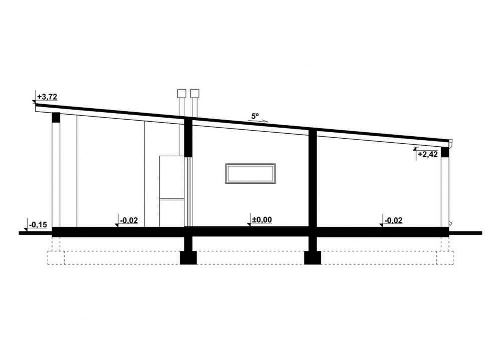 Graficzne opracowanie rzutów poglądowych widocznych na karcie projektu zostało wykonane przez Extradom.pl. Prezentowane przez Extradom.pl wizualizacje wykonane zostały przez autora projektu i należy poczytywać je jedynie za przykład i propozycję wykończenia, wizję architektoniczną autora projektu. Ostateczne wykończenie budynku może nastąpić na wiele sposobów. Szczegółowe rozwiązania zastosowane w oferowanej dokumentacji - w tym również ilość, lokalizacje i wygląd okien, drzwi, kominów - mogą w niewielkim stopniu różnić się od prezentowanej wizualizacji budynku.