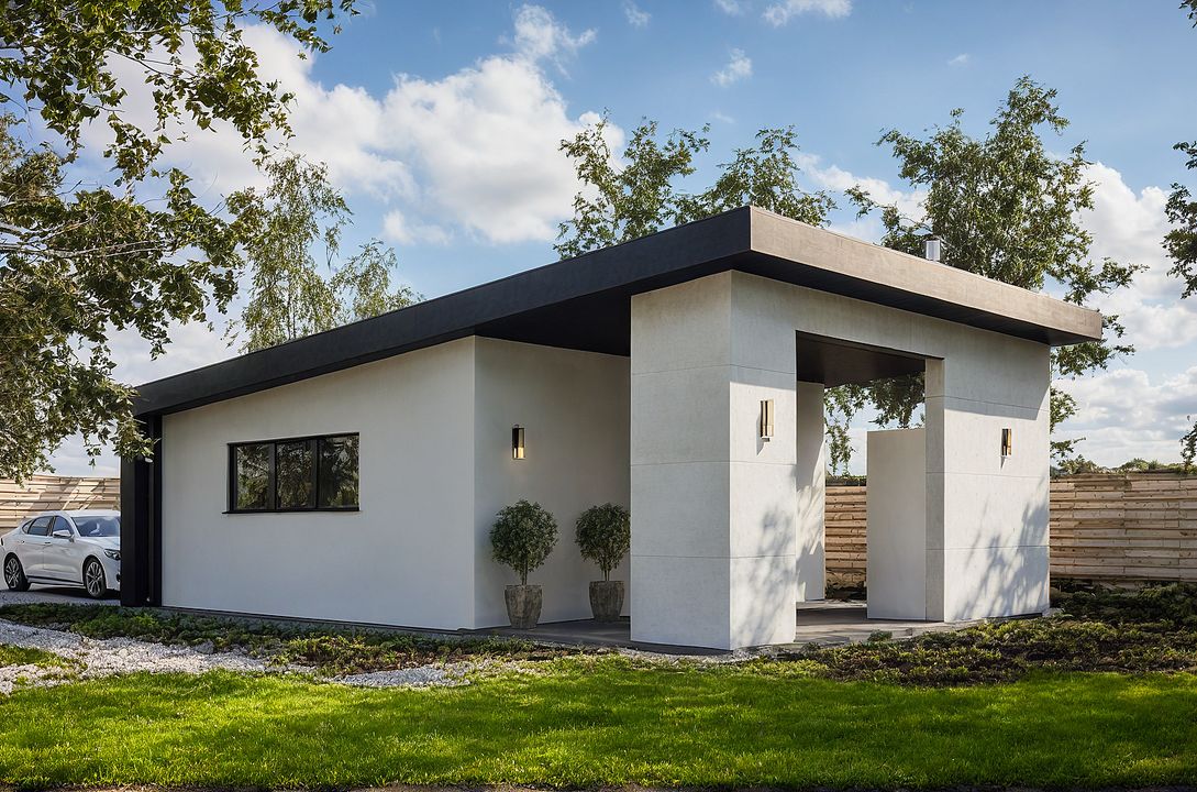 Budynek wykonany w technologii tradycyjnej. Ściany murowane z bloczków z betonu komórkowego grubości 24cm. Bramy o wymiarach 2,50×2,20m. Grill z cegły ceramicznej pełnej. Podciągi żelbetowe. Więźba dachowa jednospadowa, drewniana, pokryta blachą trapezową.