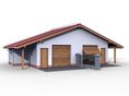 Graficzne opracowanie rzutów poglądowych widocznych na karcie projektu zostało wykonane przez Extradom.pl. Prezentowane przez Extradom.pl wizualizacje wykonane zostały przez autora projektu i należy poczytywać je jedynie za przykład i propozycję wykończenia, wizję architektoniczną autora projektu. Ostateczne wykończenie budynku może nastąpić na wiele sposobów. Szczegółowe rozwiązania zastosowane w oferowanej dokumentacji - w tym również ilość, lokalizacje i wygląd okien, drzwi, kominów - mogą w niewielkim stopniu różnić się od prezentowanej wizualizacji budynku.