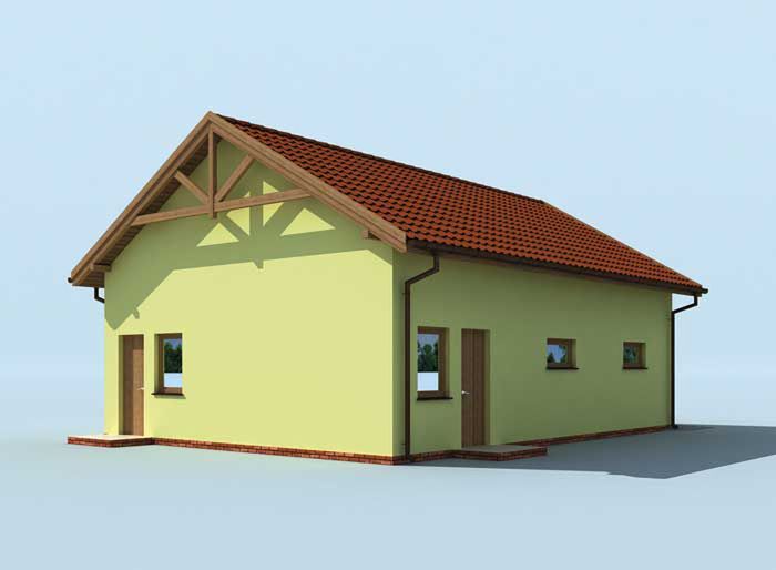 Ściany zewnętrzne nośne murowane grubości 25 cm. Ściany wewnętrzne działowe murowane grubości 12 cm. Wszystkie ściany wykonane z pustaków ceramicznych. Więźba dachowa drewniana. Pokrycie dachówka ceramiczna. Wymiary bram garażowych 2,8 x 3,0 m.