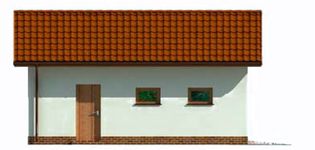 Ściany zewnętrzne nośne murowane grubości 25 cm. Wszystkie ściany wykonane z pustaków ceramicznych. Więźba dachowa drewniana. Pokrycie dachu dachówka ceramiczna. Wymiar bramy garażowej 2,4 x 2,4 m.