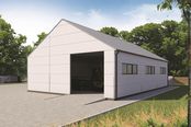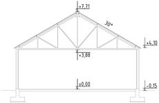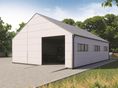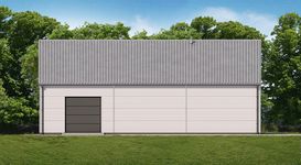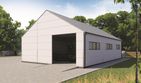 Ściany zewnętrzne: płyta warstwowa z rdzeniem styropianowym 10cm. Strop: brak, sufit z płyty warstwowej z rdzeniem styropianowym podwieszony do pasa dolnego kratownicy. Schody: brak. Ścianka kolankowa: brak. Dach: dwuspadowy, pokrycie z blachy trapezowej.