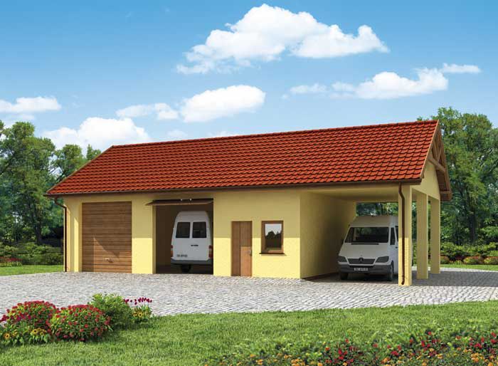 G210 garaż dwustanowiskowy z pomieszczeniami gospodarczymi i wiatą - SLN1296