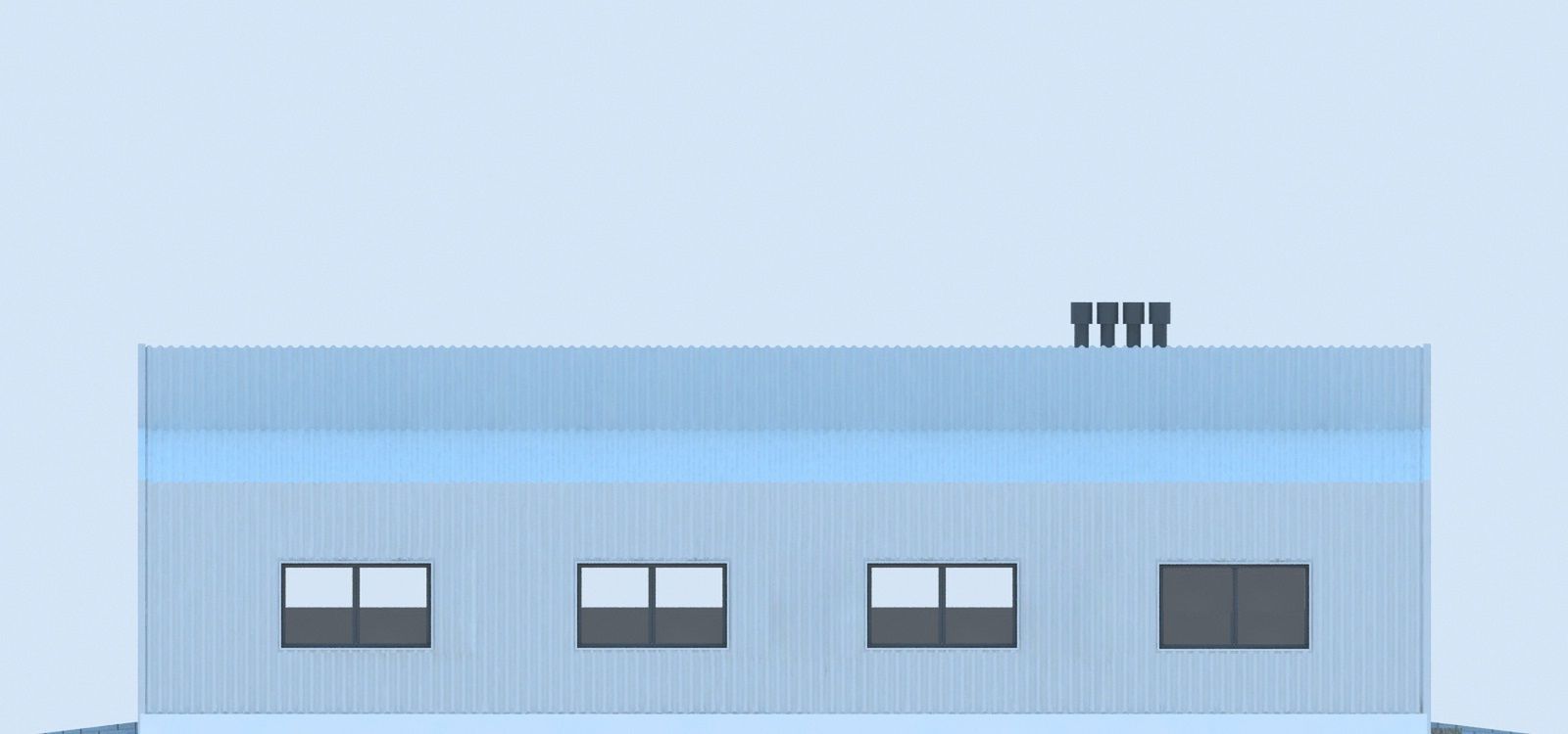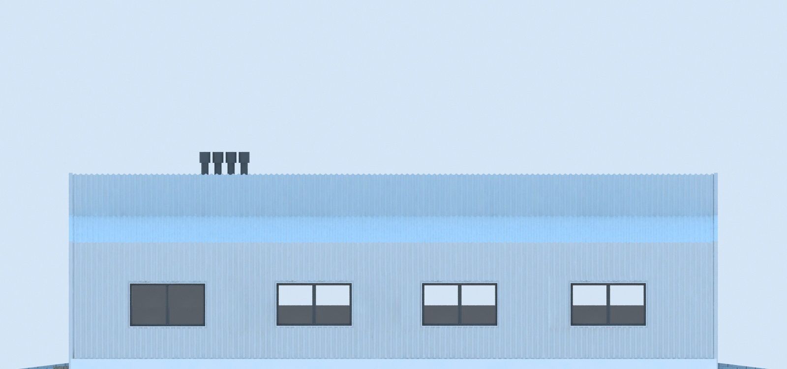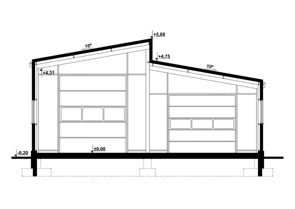 Budynek konstrukcji stalowej. Ściany z płyty warstwowej. Bramy o wymiarach 3,50×4,00m i 3,50×3,00m. Więźba dachowa dwuspadowa, stalowa, pokryta płytą warstwową.