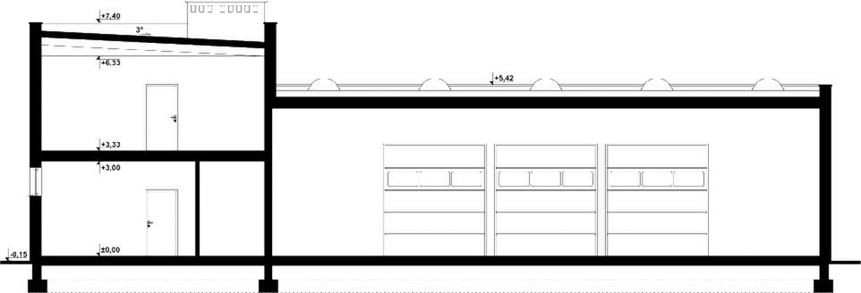 Budynek wykonany w technologii tradycyjnej. Ściany warstwowe grubości 36cm, murowane z bloczków z betonu komórkowego grubości 24cm, ocieplone styropianem grubości 12cm. Ściany wewnętrzne z bloczków z betonu komórkowego grubości 24cm i 12cm. Bramy o wymiarach 3,25×3,50m. Komin z cegły ceramicznej pełnej. Strop gęstożebrowy „TERIVA 4,0”. Więźba dachowa dwuspadowa, stalowa, pokryta płytą warstwową.