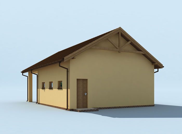 Technologia tradycyjna. Ściany zewnętrzne nośne murowane grubości 25 cm. Wszystkie ściany wykonane pustaków ceramicznych "POROTHERM". Więźba dachowa drewniana. Pokrycie dachu dachówka ceramiczna. Wymiar bramy garażowej 3,0x3,0 m.
