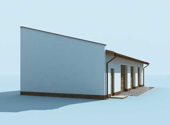 Graficzne opracowanie rzutów poglądowych widocznych na karcie projektu zostało wykonane przez Extradom.pl. Prezentowane przez Extradom.pl wizualizacje wykonane zostały przez autora projektu i należy poczytywać je jedynie za przykład i propozycję wykończenia, wizję architektoniczną autora projektu. Ostateczne wykończenie budynku może nastąpić na wiele sposobów. Szczegółowe rozwiązania zastosowane w oferowanej dokumentacji - w tym również ilość, lokalizacje i wygląd okien, drzwi, kominów - mogą w niewielkim stopniu różnić się od prezentowanej wizualizacji budynku.