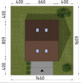 Graficzne opracowanie rzutów poglądowych widocznych na karcie projektu zostało wykonane przez Extradom.pl. Prezentowane przez Extradom.pl wizualizacje wykonane zostały przez autora projektu i należy poczytywać je jedynie za przykład i propozycję wykończenia, wizję architektoniczną autora projektu. Ostateczne wykończenie budynku może nastąpić na wiele sposobów. Szczegółowe rozwiązania zastosowane w oferowanej dokumentacji - w tym również ilość, lokalizacje i wygląd okien, drzwi, kominów - mogą w niewielkim stopniu różnić się od prezentowanej wizualizacji budynku.