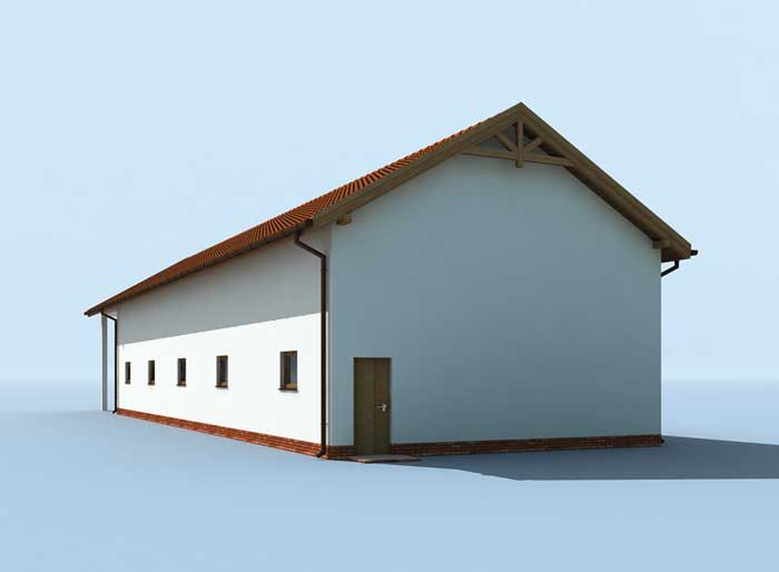 Technologia tradycyjna. Ściany zewnętrzne nośne murowane grubości 25 cm. Wszystkie ściany wykonane pustaków ceramicznych "POROTHERM". Więźba dachowa drewniana. Pokrycie dachu dachówka ceramiczna. Wymiar bramgarażowych 1x 2,5x3,5 m; 3x 3,5x3,5 m; 1x 3,5x3,8 m.