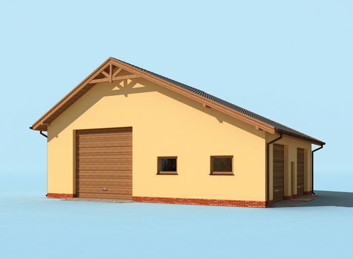Technologia tradycyjna. Ściany zewnętrzne nośne murowane grubości 25 cm. Wszystkie ściany wykonane z pustaków ceramicznych. Więźba dachowa drewniana. Pokrycie dachu dachówka ceramiczna. Wymiary bram garażowych 2x 4,2x4,0 m i 2x 3,0x3,0 m.