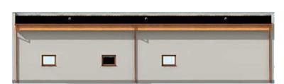 Technologia tradycyjna. Ściany zewnętrzne nośne murowane grubości 25 cm. Wszystkie ściany wykonane z pustaków ceramicznych. Więźba dachowa drewniana. Pokrycie dachu papa. Wymiar bramy garażowej 4,4 x 3,5 m.