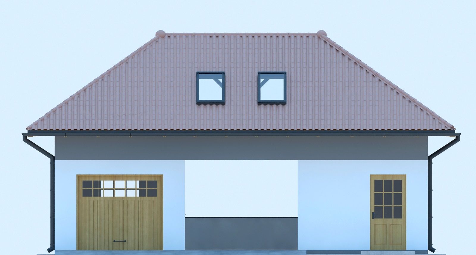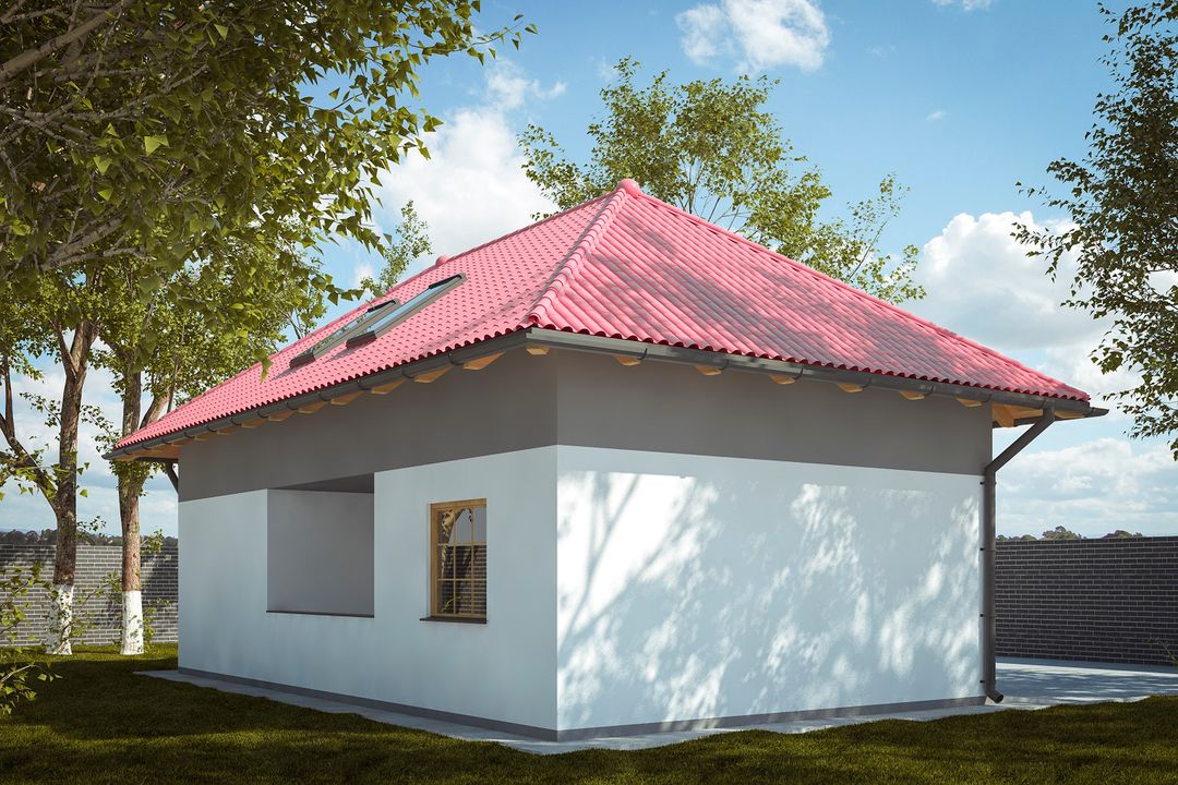 Graficzne opracowanie rzutów poglądowych widocznych na karcie projektu zostało wykonane przez Extradom.pl. Prezentowane przez Extradom.pl wizualizacje wykonane zostały przez autora projektu i należy poczytywać je jedynie za przykład i propozycję wykończenia, wizję architektoniczną autora projektu. Ostateczne wykończenie budynku może nastąpić na wiele sposobów. Szczegółowe rozwiązania zastosowane w oferowanej dokumentacji - w tym również ilość, lokalizacje i wygląd okien, drzwi, kominów - mogą w niewielkim stopniu różnić się od prezentowanej wizualizacji budynku.