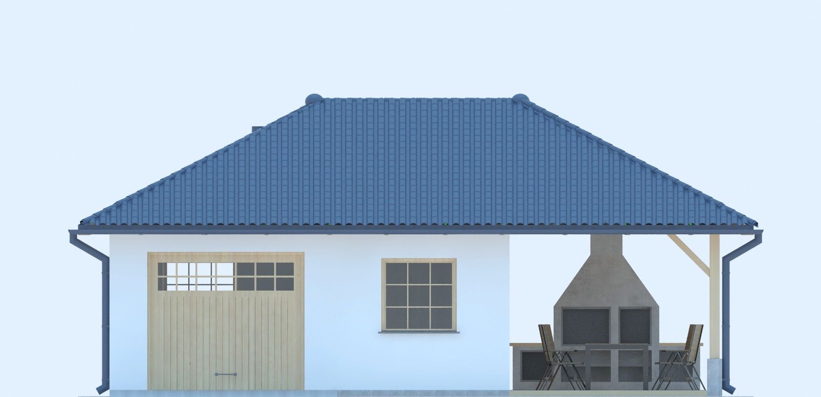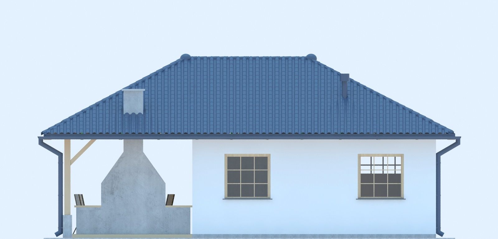 Graficzne opracowanie rzutów poglądowych widocznych na karcie projektu zostało wykonane przez Extradom.pl. Prezentowane przez Extradom.pl wizualizacje wykonane zostały przez autora projektu i należy poczytywać je jedynie za przykład i propozycję wykończenia, wizję architektoniczną autora projektu. Ostateczne wykończenie budynku może nastąpić na wiele sposobów. Szczegółowe rozwiązania zastosowane w oferowanej dokumentacji - w tym również ilość, lokalizacje i wygląd okien, drzwi, kominów - mogą w niewielkim stopniu różnić się od prezentowanej wizualizacji budynku.