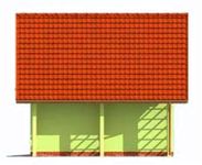 Technologia tradycyjna. Ściany zewnętrzne nośne murowane grubości 25 cm. Wszystkie ściany wykonane pustaków ceramicznych. Więźba dachowa drewniana. Pokrycie dachu dachówka ceramiczna. Wymiar bramy garażowej 2,4 x 2,4 m.