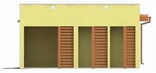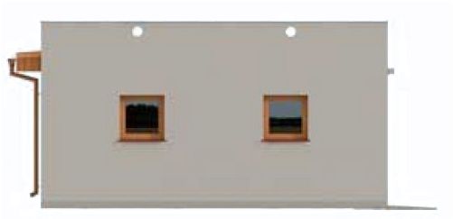 Technologia tradycyjna. Ściany zewnętrzne nośne murowane grubości 25 cm. Wszystkie ściany wykonane z pustaków ceramicznych. Więźba dachowa drewniana. Pokrycie dachu papa. Wymiar bramy garażowej 2,4x2,4 m.