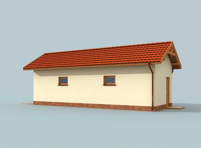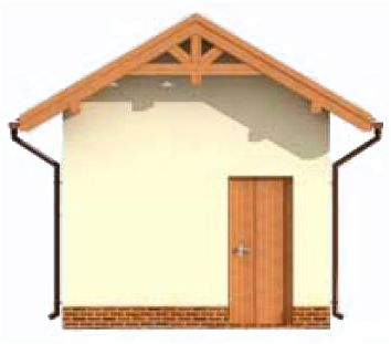 Technologia tradycyjna. Ściany zewnętrzne nośne murowane grubości 25 cm. Wszystkie ściany wykonane z pustaków ceramicznych. Więźba dachowa drewniana. Pokrycie dachu dachówka ceramiczna. Wymiar bramy garażowej 2,4x2,4m.