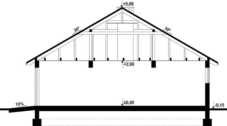 Graficzne opracowanie rzutów poglądowych widocznych na karcie projektu zostało wykonane przez Extradom.pl. Prezentowane przez Extradom.pl wizualizacje wykonane zostały przez autora projektu i należy poczytywać je jedynie za przykład i propozycję wykończenia, wizję architektoniczną autora projektu. Ostateczne wykończenie budynku może nastąpić na wiele sposobów. Szczegółowe rozwiązania zastosowane w oferowanej dokumentacji - w tym również ilość, lokalizacje i wygląd okien, drzwi, kominów - mogą w niewielkim stopniu różnić się od prezentowanej wizualizacji budynku.