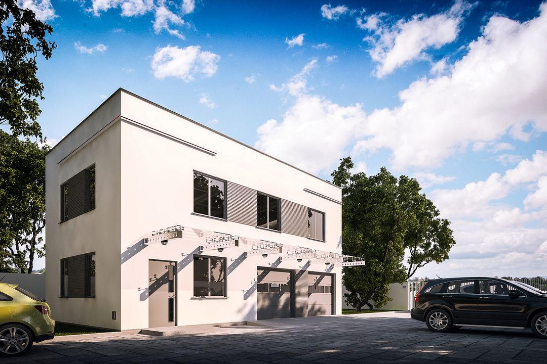 Budynek wykonany w technologii tradycyjnej. Ściany murowane z bloczków z betonu komórkowego grubości 24cm i 12cm. Bramy o wymiarach 2,50×2,20m. Strop gęstożebrowy „TERIVA 4,0”. Więźba dachowa jednospadowa, stalowa, pokryta płytą warstwową.