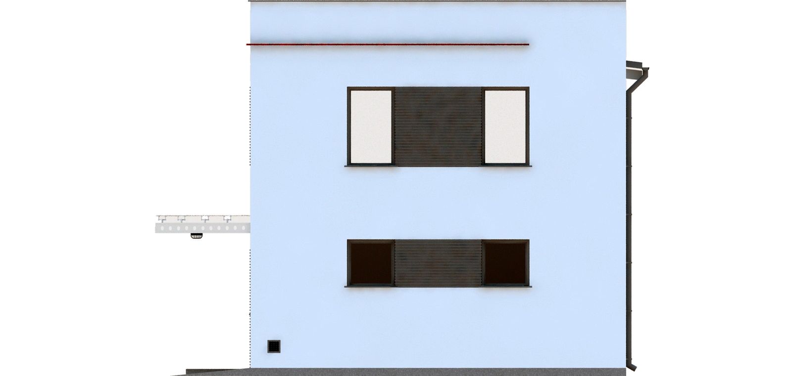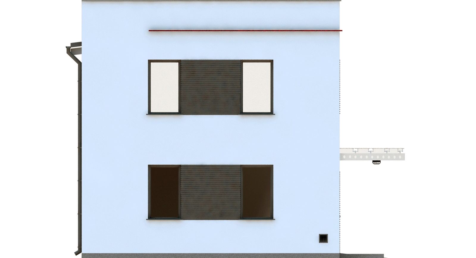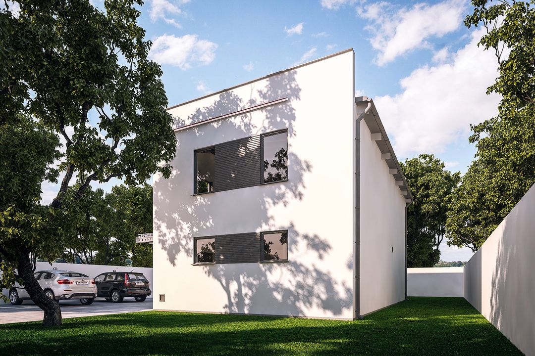 Graficzne opracowanie rzutów poglądowych widocznych na karcie projektu zostało wykonane przez Extradom.pl. Prezentowane przez Extradom.pl wizualizacje wykonane zostały przez autora projektu i należy poczytywać je jedynie za przykład i propozycję wykończenia, wizję architektoniczną autora projektu. Ostateczne wykończenie budynku może nastąpić na wiele sposobów. Szczegółowe rozwiązania zastosowane w oferowanej dokumentacji - w tym również ilość, lokalizacje i wygląd okien, drzwi, kominów - mogą w niewielkim stopniu różnić się od prezentowanej wizualizacji budynku.