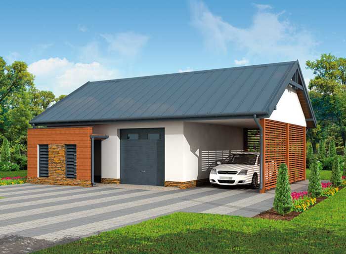 G277 garaż jednostanowiskowy z pomieszczeniem gospodarczym i wiatą - SLN1355