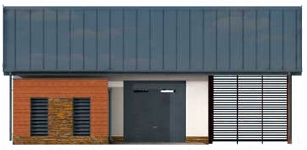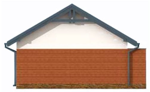 Technologia tradycyjna. Ściany zewnętrzne nośne murowane grubości 25 cm. Wszystkie ściany wykonane pustaków ceramicznych. Więźba dachowa drewniana. Pokrycie dachu panel dachowy na rąbek. Wymiar bramy garażowej 2,4 x 2,4 m.