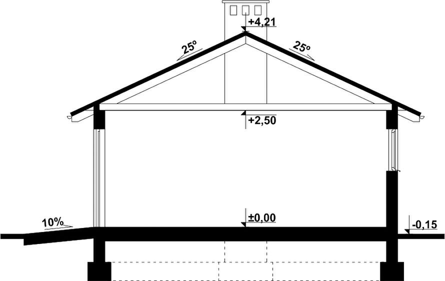 Graficzne opracowanie rzutów poglądowych widocznych na karcie projektu zostało wykonane przez Extradom.pl. Prezentowane przez Extradom.pl wizualizacje wykonane zostały przez autora projektu i należy poczytywać je jedynie za przykład i propozycję wykończenia, wizję architektoniczną autora projektu. Ostateczne wykończenie budynku może nastąpić na wiele sposobów. Szczegółowe rozwiązania zastosowane w oferowanej dokumentacji - w tym również ilość, lokalizacje i wygląd okien, drzwi, kominów - mogą w niewielkim stopniu różnić się od prezentowanej wizualizacji budynku.