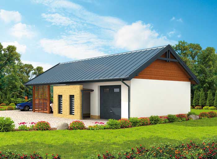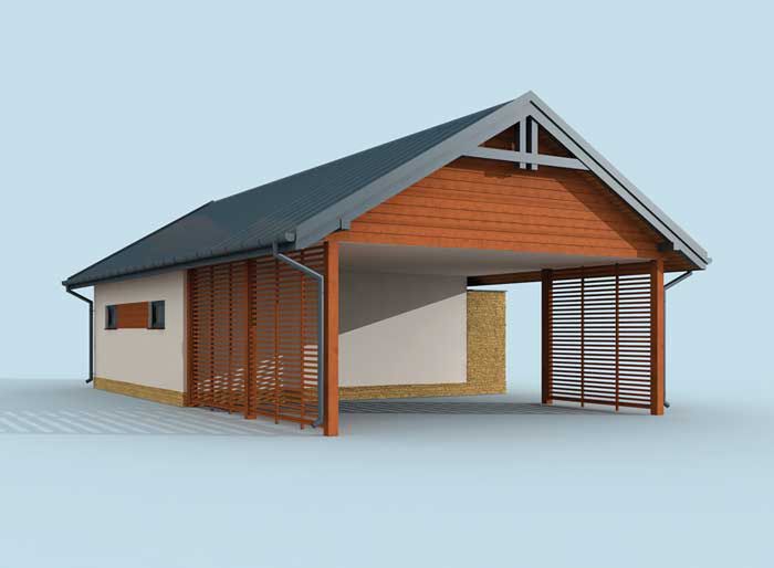 G282 szkielet drewniany garaż z wiatą i pomieszczeniami gospodarczymi - SLN2517