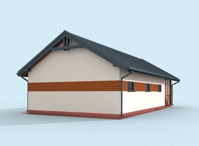 Graficzne opracowanie rzutów poglądowych widocznych na karcie projektu zostało wykonane przez Extradom.pl. Prezentowane przez Extradom.pl wizualizacje wykonane zostały przez autora projektu i należy poczytywać je jedynie za przykład i propozycję wykończenia, wizję architektoniczną autora projektu. Ostateczne wykończenie budynku może nastąpić na wiele sposobów. Szczegółowe rozwiązania zastosowane w oferowanej dokumentacji - w tym również ilość, lokalizacje i wygląd okien, drzwi, kominów - mogą w niewielkim stopniu różnić się od prezentowanej wizualizacji budynku.