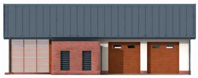 Technologia tradycyjna :- powierzchnia użytkowa budynku 64,03m2 - powierzchnia użytkowa werandy -20,07m2- powierzchnia zabudowy budynk -98,96m2 - powierzchnia całkowita -98,96m2 - kubatura części zamkniętej -305,54m3 części otwartej -73,67m3 - ściany zewnętrzne nośne murowane grubości 25cm - wszystkie ściany wykonane pustaków ceramicznych "POROTHERM" - wysokość budynku 5,36m - dach jednospadowy 30° - więźba dachowa drewniana - pokrycie dachu blacha - wymiar bram garażowych 2,4x2,4m