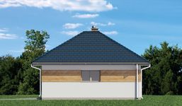 Graficzne opracowanie rzutów poglądowych widocznych na karcie projektu zostało wykonane przez Extradom.pl. Prezentowane przez Extradom.pl wizualizacje wykonane zostały przez autora projektu i należy poczytywać je jedynie za przykład i propozycję wykończenia, wizję architektoniczną autora projektu. Ostateczne wykończenie budynku może nastąpić na wiele sposobów. Szczegółowe rozwiązania zastosowane w oferowanej dokumentacji - w tym również ilość, lokalizacje i wygląd okien, drzwi, kominów - mogą w niewielkim stopniu różnić się od prezentowanej wizualizacji budynku.