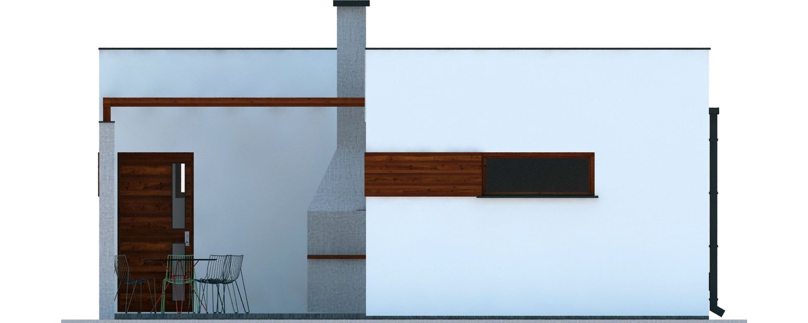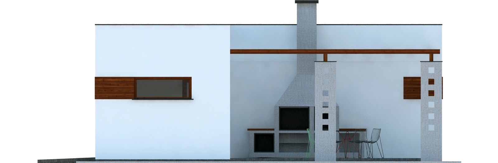 Graficzne opracowanie rzutów poglądowych widocznych na karcie projektu zostało wykonane przez Extradom.pl. Prezentowane przez Extradom.pl wizualizacje wykonane zostały przez autora projektu i należy poczytywać je jedynie za przykład i propozycję wykończenia, wizję architektoniczną autora projektu. Ostateczne wykończenie budynku może nastąpić na wiele sposobów. Szczegółowe rozwiązania zastosowane w oferowanej dokumentacji - w tym również ilość, lokalizacje i wygląd okien, drzwi, kominów - mogą w niewielkim stopniu różnić się od prezentowanej wizualizacji budynku.