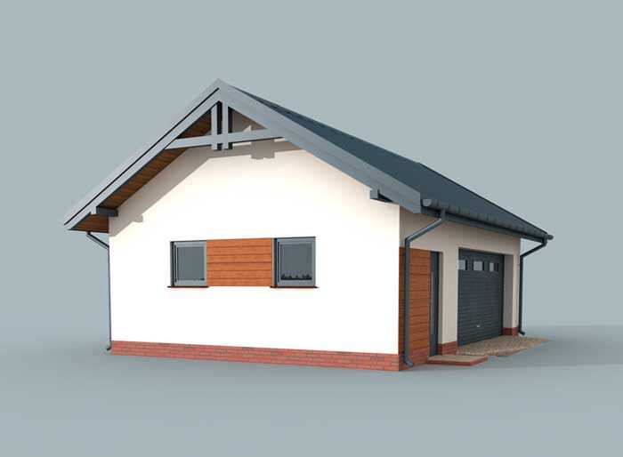 Ściany zewnętrzne nośne murowane grubości 25cm. Wszystkie ściany wykonane pustaków ceramicznych "POROTHERM". Więźba dachowa drewniana. Pokrycie dachu blachodachówka lub blacha. Wymiar bramy garażowej 5,0x2,2m.