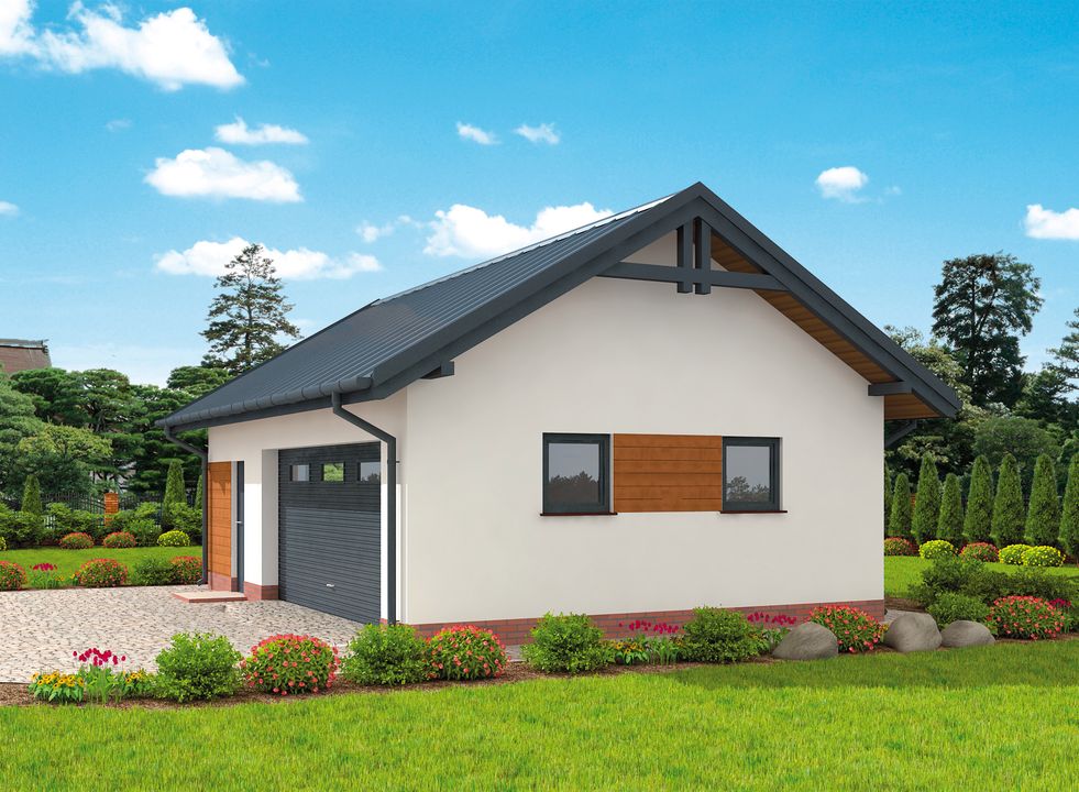 G292 szkielet drewniany projekt garażu dwustanowiskowego z pomieszczeniem gospodarczym - SLN2476