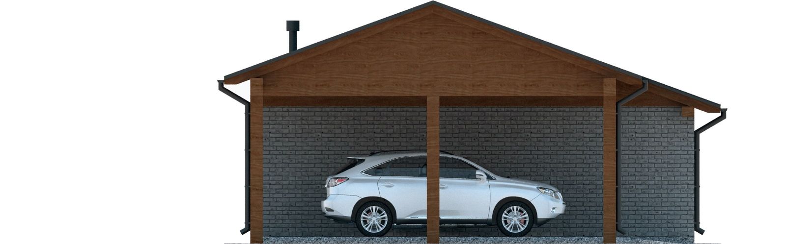 Budynek wykonany w technologii tradycyjnej. Ściany murowane z bloczków z betonu komórkowego grubości 24cm. Bramy o wymiarach 2,50×2,20m. Słupy i podciągi drewniane. Więźba dachowa dwuspadowa, drewniana, pokryta blachodachówką.