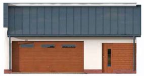 Technologia tradycyjna . Ściany zewnętrzne nośne murowane grubości 25 cm. Wszystkie ściany wykonane z pustaków ceramicznych "POROTHERM". Więźba dachowa drewniana. Pokrycie dachu panele dachowe na rąbek. Wymiar bramy garażowej 5,0x2,4 m.