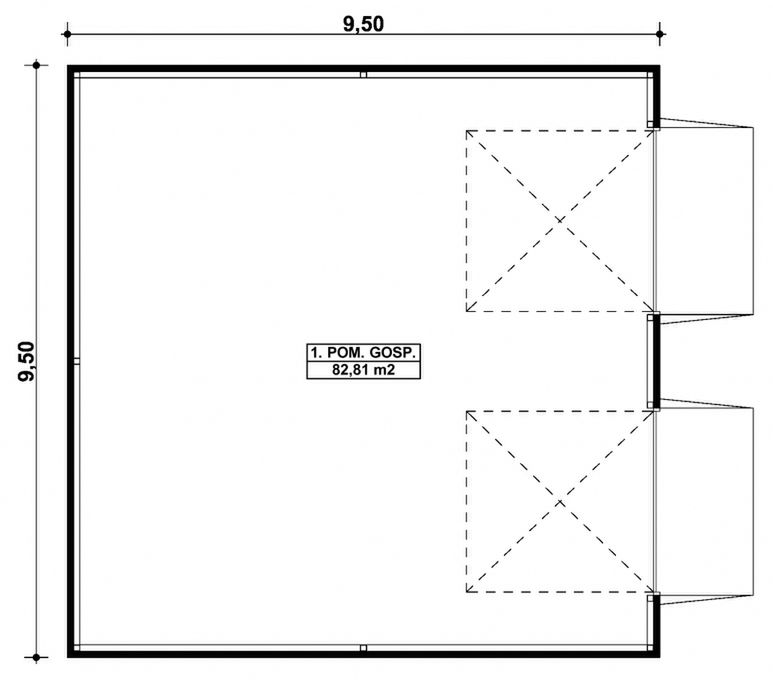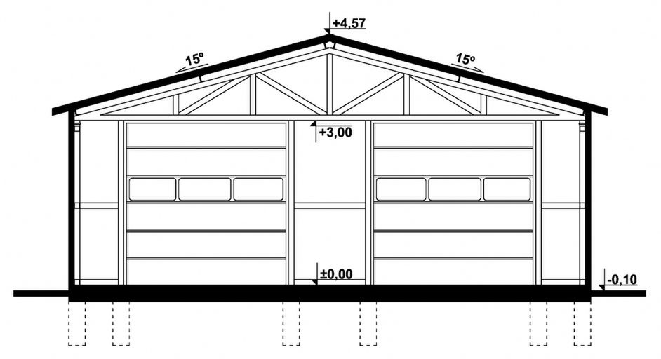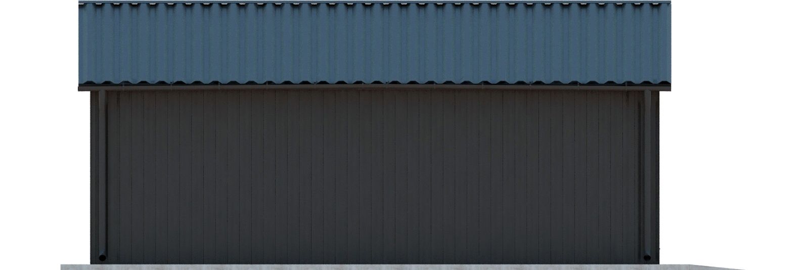 Budynek konstrukcji stalowej. Ściany z płyty warstwowej. Bramy o wymiarach 3,00×3,00m. Więźba dachowa dwuspadowa, stalowa, pokryta płytą warstwową.