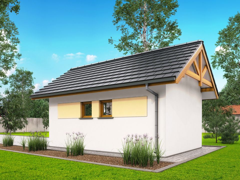 Graficzne opracowanie rzutów poglądowych widocznych na karcie projektu zostało wykonane przez Extradom.pl. Prezentowane przez Extradom.pl wizualizacje wykonane zostały przez autora projektu i należy poczytywać je jedynie za przykład i propozycję wykończenia, wizję architektoniczną autora projektu. Ostateczne wykończenie budynku może nastąpić na wiele sposobów. Szczegółowe rozwiązania zastosowane w oferowanej dokumentacji - w tym również ilość, lokalizacje i wygląd okien, drzwi, kominów - mogą w niewielkim stopniu różnić się od prezentowanej wizualizacji budynku.